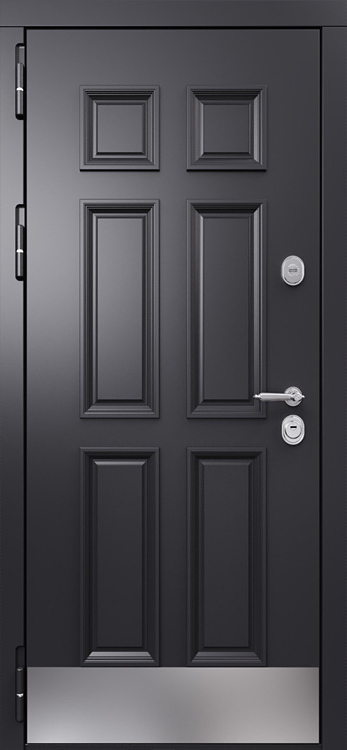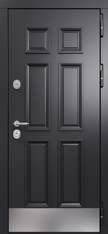 Входная дверь с МДФ №566 создана для тех, кто ценит прочность металла и уютный внешний вид в одном решении. Она одинаково хорошо вписывается в частный дом, квартиру или офис, подчеркивая солидность пространства и обеспечивая надежную защиту. Каркас и полотно собраны из профильных труб, усиленных ребрами жесткости, а стальной лист толщиной 2 мм гарантирует устойчивость к взлому и длительный срок службы. С обеих сторон дверь облицована МДФ панелями с ПВХ-покрытием, что делает поверхность более устойчивой к истиранию и мелким повреждениям, сохраняя привлекательность даже при интенсивной эксплуатации. Панели легко очищаются и не выгорают на солнце, благодаря чему дверь подходит и для уличной установки. Два контура уплотнения надежно защищают от сквозняков и посторонних запахов, а при необходимости можно дополнительно усилить конструкцию тепло- и шумоизоляцией. Модель №566 сочетает в себе сдержанный дизайн и функциональность, делая ее практичным выбором для самых разных помещений. Входная дверь с МДФ №566 от производителя: быстрое изготовление и монтаж в Озерах, индивидуальные размеры, широкий выбор материалов и фурнитуры, официальная гарантия до 10 лет.