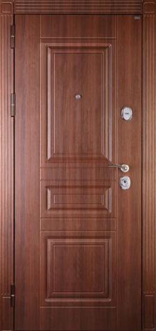 Входная металлическая дверь на заказ с МДФ №567 сочетает в себе надежность стали и эстетичность древесной отделки. Такая модель одинаково органично смотрится в частном доме, квартире или офисе, обеспечивая солидный внешний вид и высокий уровень защиты. Конструкция собрана из профильных труб с ребрами жесткости и дополнена листом металла толщиной 2 мм, что делает дверь устойчивой к механическим нагрузкам и попыткам взлома. Внутренняя и внешняя стороны оформлены МДФ накладками, которые придают поверхности аккуратный вид, легко поддаются чистке и сохраняют цвет даже при длительной эксплуатации. Два контура уплотнения защищают от сквозняков, а возможность дополнительной шумо- и теплоизоляции делает изделие более универсальным. Несмотря на массивность, дверь выглядит аккуратно и современно, подчеркивая статус владельца и добавляя интерьеру завершенности. Входная металлическая дверь на заказ с МДФ №567 от производителя: быстрое изготовление и монтаж в Озерах, индивидуальные размеры, широкий выбор материалов и фурнитуры, официальная гарантия до 10 лет.