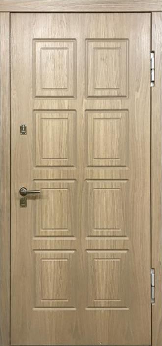 Дверь входная в частный дом №44 сочетает в себе надёжность стальной основы и практичность декоративной отделки. Каркас и полотно из профильной трубы с листом металла толщиной 2 мм обеспечивают устойчивость к нагрузкам, а рёбра жёсткости повышают общую прочность конструкции. В коробке и полотне предусмотрен терморазрыв, который предотвращает промерзание и помогает сохранять тепло внутри помещения, что особенно важно для частных домов и коттеджей. Снаружи и внутри дверь облицована МДФ-накладками, материалом, устойчивым к мелким повреждениям и удобным в уходе, благодаря чему изделие долго сохраняет презентабельный вид. Двойной контур уплотнителей блокирует сквозняки и влагу, создавая дополнительный комфорт. Для безопасности установлены два замка — сувальдный Просам и цилиндровый Мосрентген, оба с трёхригельной системой. Модель легко адаптируется под пожелания заказчика: можно изменить отделку или добавить декоративные элементы, превращая дверь в индивидуальное решение для дома, офиса или квартиры. Дверь входная в частный дом №44 от производителя: быстрое изготовление и монтаж в Озерах, индивидуальные размеры, широкий выбор материалов и фурнитуры, официальная гарантия до 10 лет.