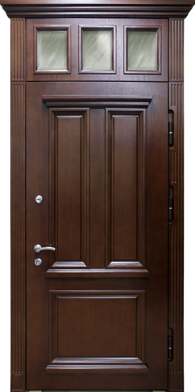Дверь с сувальдным замком и фрамугой №34 идеально сочетает в себе стиль и надежность. Панель из натурального дерева, использованная как для внешней, так и для внутренней отделки, придает двери благородный и элегантный вид, делая её отличным выбором для помещений с классическим или современным интерьером. Каркас двери выполнен из профильной трубы 50х25 мм и усилен ребрами жесткости, что гарантирует прочность конструкции. Замки от производителей "Просам" и "Мосрентген" с тремя ригелями обеспечивают высокий уровень безопасности. Дверь оснащена уплотнителями с двумя контурами, что гарантирует отличную герметичность, а возможность замены замков и добавления кованых элементов делает её адаптируемой под любые требования. Кроме того, дверь можно дополнить зеркалом, стеклопакетом или видеодомофоном для еще большего комфорта. Входная дверь с сувальдным замком и фрамугой №34 от производителя: быстрое изготовление и монтаж в Озерах, индивидуальные размеры, широкий выбор материалов и фурнитуры, официальная гарантия до 10 лет.