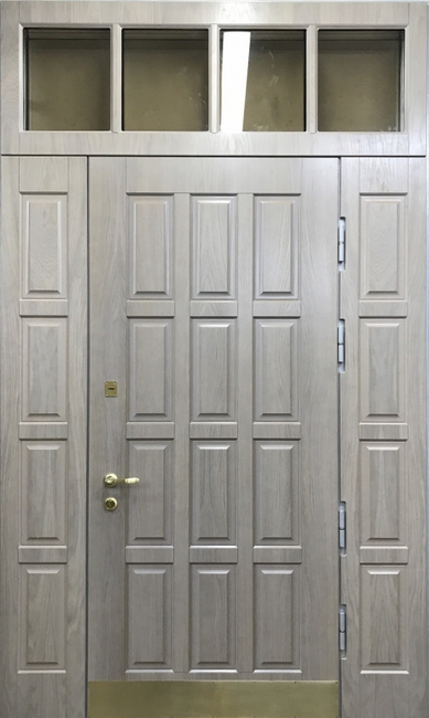Входная дверь с остекленной фрамугой №1 привлекает внимание благодаря стильному и современному дизайну. Ее внешняя и внутренняя отделка из МДФ выглядит элегантно и долговечно, а также устойчива к механическим повреждениям, таким как царапины и вмятины. Каркас из профильной трубы и металл толщиной 2 мм гарантируют прочность и надежность. Наличие фрамуги позволяет создать эффектное освещение и визуально расширяет пространство, при этом сохранение теплоизоляции обеспечено двумя контурами резинового уплотнителя. Блокираторы и качественные замки, такие как Просам и Мосрентген, надежно защищают от взлома. Возможность дополнить дверь стеклопакетом, зеркалом или коваными элементами делает эту модель еще более универсальной для различных интерьеров. Входная дверь с остекленной фрамугой №1 от производителя: быстрое изготовление и монтаж в Озерах, индивидуальные размеры, широкий выбор материалов и фурнитуры, официальная гарантия до 10 лет.