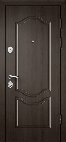Входная дверь для квартиры чёрная №553 сразу выделяется строгим и уверенным характером. Глубокий тёмный оттенок придает конструкции солидность и универсальность — такая дверь одинаково уместна и в современном офисе, и в квартире, и в частном доме. Каркас выполнен из профильной трубы с металлическим листом толщиной 2 мм и усилен ребрами жесткости, что гарантирует высокую надежность и стойкость к взлому. С обеих сторон используется накладка МДФ, которая не только украшает полотно, но и обеспечивает стойкость к мелким повреждениям и износу, сохраняя аккуратный внешний вид долгие годы. Два контура уплотнения вместе с резиновыми вставками улучшают герметичность и комфорт при закрытии. Дверь гармонично сочетает практичность металла и элегантность декоративной отделки, создавая впечатление уверенности и защищенности уже с первого взгляда. Входная дверь для квартиры чёрная №553 от производителя: быстрое изготовление и монтаж в Озерах, индивидуальные размеры, широкий выбор материалов и фурнитуры, официальная гарантия до 10 лет.