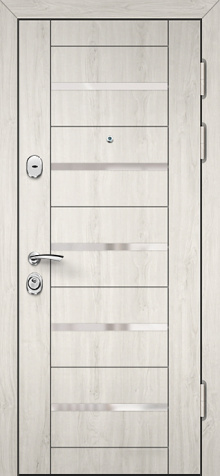 Прочная стальная конструкция с листом металла толщиной 2 мм и надежными ребрами жесткости делает эту модель отличным вариантом для квартир, частных домов и офисов. Каркас и полотно выполнены из профильной трубы, что обеспечивает долговечность и сопротивление взлому, а двойной контур уплотнения защищает от сквозняков и постороннего шума. Отделка с обеих сторон выполнена накладками из МДФ, которые не только придают аккуратный и современный внешний вид, но и отличаются стойкостью к царапинам и ударам. Стальная входная дверь в квартиру №160 может быть изготовлена в любых размерах и вариантах открывания, а систему безопасности дополняют два замка российского производства: сувальдный Просам и цилиндровый Мосрентген, каждый с тремя мощными ригелями. По желанию заказчика возможна установка зеркала, стеклопакета, ковки или умного замка, что превращает изделие из просто двери в продуманное решение для комфортной и безопасной жизни. Стальная входная дверь в квартиру №160 от производителя: быстрое изготовление и монтаж в Озерах, индивидуальные размеры, широкий выбор материалов и фурнитуры, официальная гарантия до 10 лет.