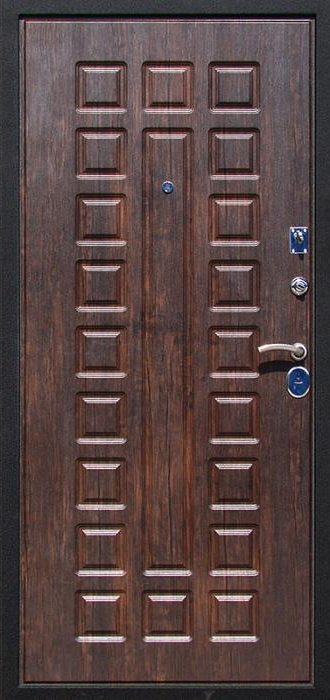 Входная дверь в квартиру ширина стандарт №41 создана как универсальное решение для городских квартир, частных домов и офисных помещений. Конструкция на основе профильной трубы и листа стали толщиной 2 мм обеспечивает прочность и устойчивость к взлому, а рёбра жёсткости добавляют дополнительную надёжность. С обеих сторон дверь облицована плитами МДФ, которые придают поверхности аккуратный внешний вид и защищают её от мелких повреждений. Такой вариант отделки отличается практичностью: панели устойчивы к влаге, сохраняют форму и цвет, даже если дверь эксплуатируется ежедневно. Два контура резиновых уплотнителей не дают проникнуть сквознякам и уличному шуму, а терморазрыв в коробке и полотне препятствует промерзанию в холодное время года. Благодаря стандартной ширине установка не требует сложных подготовительных работ, а при необходимости дверь может быть изготовлена в индивидуальном размере. Входная дверь в квартиру ширина стандарт №41 от производителя: быстрое изготовление и монтаж в Озерах, индивидуальные размеры, широкий выбор материалов и фурнитуры, официальная гарантия до 10 лет.