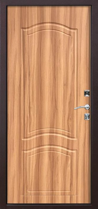 Элегантный ореховый оттенок всегда ассоциируется с надёжностью и уютом, а в сочетании с металлической основой он приобретает ещё и солидный характер. Панели МДФ с ПВХ-покрытием не только придают двери выразительный внешний вид, но и защищают её от случайных царапин, сохраняя поверхность безупречной на долгие годы. Дверь МДФ в частный дом цвета орех №531 создаёт гармоничный акцент на фасаде коттеджа или органично вписывается в интерьер квартиры и офиса. Каркас из профильной трубы и стальной лист толщиной 2 мм образуют прочную основу, усиленную рёбрами жёсткости. Для безопасности предусмотрены два замка российского производства: сувальдный Просам и цилиндровый Мосрентген, оба с надёжной системой ригелей. Дополнительно конструкцию можно разнообразить зеркалом, стеклопакетом или коваными элементами, подчеркнув индивидуальность дома и вкус его владельца. Дверь МДФ в частный дом цвета орех №531 от производителя: быстрое изготовление и монтаж в Озерах, индивидуальные размеры, широкий выбор материалов и фурнитуры, официальная гарантия до 10 лет.