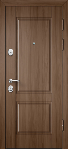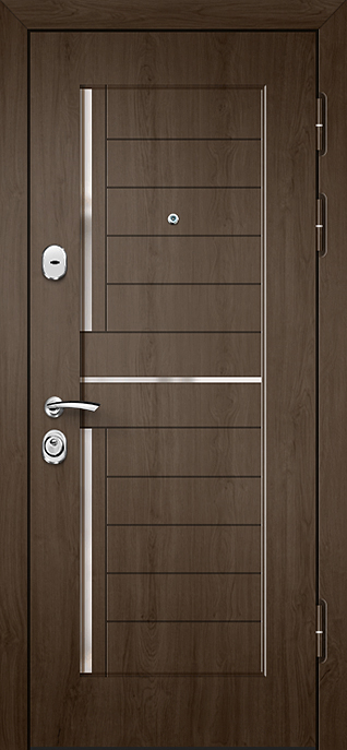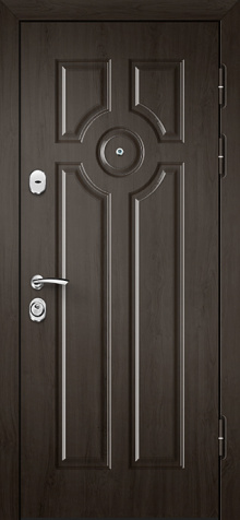Глубокий оттенок венге всегда выглядит благородно и современно, а декоративная панель придаёт полотну завершённый стильный образ. Дверь МДФ цвета венге с внешней декоративной панелью №538 подходит для установки как в частных домах, так и в квартирах или офисах, где ценят сочетание надёжности и эстетики. Плиты МДФ отличаются прочностью, стойкостью к мелким механическим повреждениям и долго сохраняют первоначальный вид без потери насыщенности цвета. Конструкция выполнена на основе стального каркаса с листом металла толщиной 2 мм и рёбрами жёсткости, что обеспечивает высокий уровень прочности. Два контура уплотнения повышают комфорт эксплуатации, защищая от сквозняков. Дополнительно дверь можно оснастить шумо- и теплоизоляцией, зеркалом, стеклопакетом или коваными элементами, сделав её не только практичной, но и индивидуальной деталью интерьера. Дверь МДФ цвета венге с внешней декоративной панелью №538 от производителя: быстрое изготовление и монтаж в Озерах, индивидуальные размеры, широкий выбор материалов и фурнитуры, официальная гарантия до 10 лет.