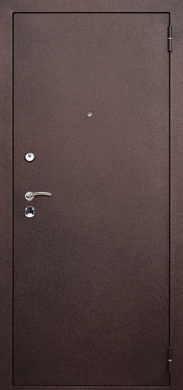 Входная дверь с напылением №82 создана для тех, кто ценит практичность и долговечность без лишних изысков. Она одинаково уверенно чувствует себя в квартире, офисе, подъезде или техническом помещении, выдерживая ежедневные нагрузки. Снаружи нанесено порошковое термонапыление — покрытие, известное своей стойкостью к царапинам и перепадам температуры, оно долго сохраняет первоначальный вид и не требует особого ухода. Внутри установлены ламинированные панели, добавляющие аккуратности и уюта. Основу конструкции формирует металлический лист толщиной 2 мм с усилением профильными трубами, что гарантирует жесткость и надежность. Два контура резинового уплотнителя эффективно блокируют сквозняки и пыль, а блокираторы повышают уровень безопасности. Модель изготавливается под любой размер проема и позволяет расширить функционал, дополнив дверь шумо- или теплоизоляцией по желанию. Входная дверь с напылением №82 от производителя: быстрое изготовление и монтаж в Озерах, индивидуальные размеры, широкий выбор материалов и фурнитуры, официальная гарантия до 10 лет.