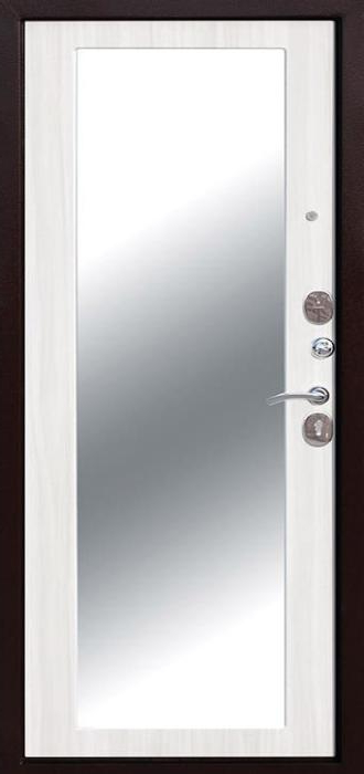 Сдержанный белый цвет придаёт модели лёгкость и визуальную чистоту, а зеркало внутри делает её особенно удобной для городских квартир и офисов, где важна каждая деталь интерьера. Белая входная дверь в квартиру с зеркалом №50 сочетает в себе функциональность и надёжность: прочный стальной каркас из профильной трубы и лист металла толщиной 2 мм обеспечивает защиту, рёбра жёсткости усиливают конструкцию, а два контура уплотнителей помогают снизить проникновение сквозняков и шума. Отделка из МДФ-накладок устойчива к царапинам и не теряет аккуратного вида даже при активной эксплуатации. Зеркальная вставка экономит пространство и делает коридор светлее, а наличие двух замков — сувальдного Просам и цилиндрового Мосрентген — обеспечивает дополнительный уровень безопасности. Белая входная дверь в квартиру с зеркалом №50 от производителя: быстрое изготовление и монтаж в Озерах, индивидуальные размеры, широкий выбор материалов и фурнитуры, официальная гарантия до 10 лет.