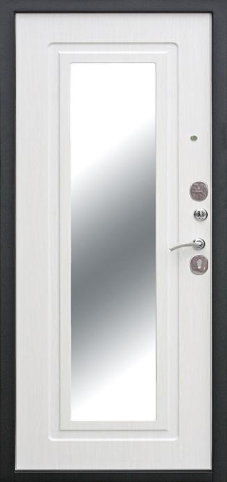Надёжность металлической двери всегда в приоритете, но когда она получает дополнительное оснащение, результат становится особенно удобным. Входная дверь с зеркалом №78 удачно объединяет прочность конструкции и практичность деталей: массивный каркас из профильной трубы, лист стали толщиной 2 мм и усиленные рёбра жёсткости формируют крепкий защитный барьер, а зеркало на внутренней стороне делает её частью интерьера, экономя место и добавляя визуального простора. Снаружи используется молотковое напыление, устойчивое к царапинам и погодным перепадам, благодаря чему дверь подходит как для квартиры, так и для частного дома. Внутренняя отделка выполнена плитой МДФ, которая выглядит стильно и сохраняет аккуратность даже при активной эксплуатации. Два контура уплотнения помогают защитить помещение от сквозняков, а при необходимости конструкцию можно дополнить шумоизоляцией, современными замками и даже видеодомофоном. Входная дверь с зеркалом №78 от производителя: быстрое изготовление и монтаж в Озерах, индивидуальные размеры, широкий выбор материалов и фурнитуры, официальная гарантия до 10 лет.