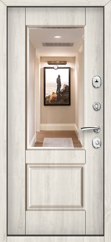 Одностворчатые и двухстворчатые двери. Стандартная входная дверь – одностворчатая, шириной около 90 см. Однако для коттеджей с широкими проемами предлагают двухстворчатые входные двери наружные. Двустворчатая дверь имеет две створки: одну основную (рабочую) и вторую – дополнительную, которую при необходимости можно открыть, чтобы пронести крупногабаритные вещи. В обычное время вторая половинка фиксируется на засовы и выглядит как часть рамы. Двухстворчатая наружная дверь смотрится очень солидно и пропускает максимум света, если оснащена стеклянными вставками. Учтите, что для тяжелых двустворчатых конструкций нужна особенно прочная рама и больше петель, ведь нагрузка выше, чем у одиночной двери.