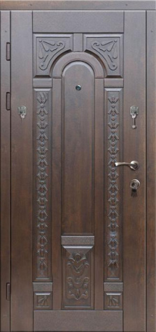 Дизайн и особые варианты. Сегодня можно подобрать наружную дверь под любые требования. Нужна максимальная термоизоляция? Существуют так называемые *тёплые двери* – модели с усиленным утеплением, терморазрывом в полотне и коробе, а также с тремя контурами уплотнений. Боитесь за сохранность имущества? Обратите внимание на усиленные, антивандальные двери с дополнительными ребрами жесткости и замками повышенного класса взломостойкости. Есть желание добавить элегантности фасаду? Популярны двери со стеклопакетом и ковкой – закаленное многослойное стекло пропускает дневной свет в прихожую, а декоративная ковка придает входу индивидуальность. Форма дверей тоже может быть нестандартной: помимо прямоугольных существуют арочные входные двери для коттеджей в классическом стиле (их изготавливают на заказ по нужным размерам). Таким образом, возможностей множество – от строгих гладких металлических полотен до роскошных двустворчатых дверей со вставками из витражного стекла.