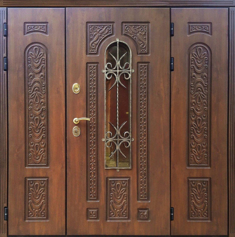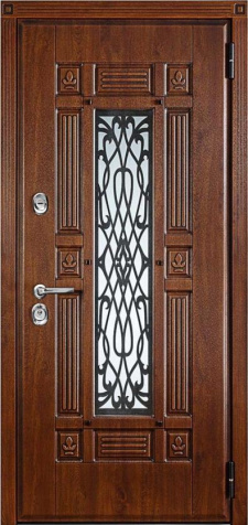 Сочетание надежной конструкции и декоративной выразительности делает входную металлическую дверь с ковкой и стеклом №20 удачным выбором для частных домов и коттеджей. Полотно собрано из профильных труб и усилено стальным листом толщиной 2 мм, дополнено ребрами жесткости и блокираторами, что обеспечивает прочность и устойчивость к нагрузкам. Два контура уплотнителя защищают от сквозняков и влаги, а по желанию доступна дополнительная шумо- и теплоизоляция. Отделка выполнена панелями МДФ ПВХ, стойкими к механическим повреждениям и перепадам температуры, благодаря чему дверь долго сохраняет свежий вид без потери эстетики. Особый акцент создают стеклянные вставки с коваными элементами, придающие входной группе парадность и индивидуальность. Такая дверь не только надежна в эксплуатации, но и подчеркивает стиль всего фасада. Входная металлическая дверь с ковкой и стеклом №20 от производителя: быстрое изготовление и монтаж в Озерах, индивидуальные размеры, широкий выбор материалов и фурнитуры, официальная гарантия до 10 лет.