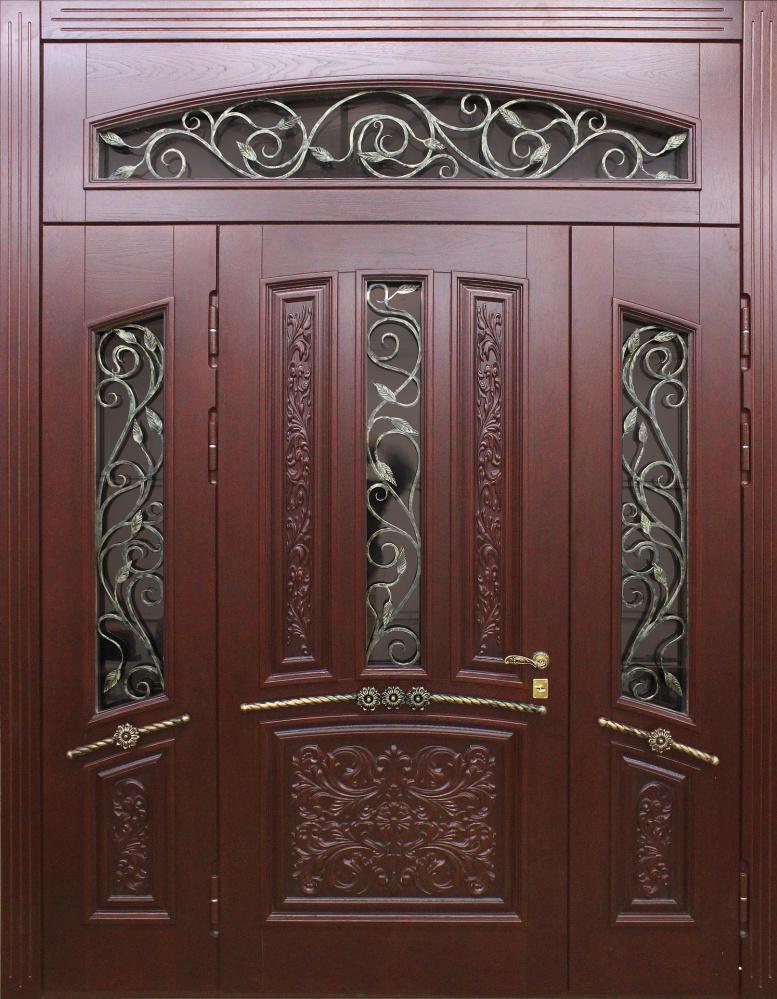 Большая входная дверь в частный дом со стеклом №328 создана для тех, кто ценит солидность и выразительный облик парадного входа. Широкое полотно на основе стальной конструкции с профилем 50х25 мм и листом металла толщиной 2 мм обеспечивает надежность и устойчивость к нагрузкам, а массив дуба в отделке придает дверному блоку статусный вид и долговечность. Натуральное дерево отличается стойкостью к повреждениям и долго сохраняет свой первозданный оттенок, что особенно важно для фасадных решений. Вставка из стекла добавляет естественного света в холл и делает интерьер более гостеприимным. Двойной контур резинового уплотнителя защищает от сквозняков, а наличие блокираторов повышает уровень безопасности. Такая дверь гармонично смотрится в коттеджах и частных домах, где парадный вход становится главным акцентом архитектуры. Большая входная дверь в частный дом со стеклом №328 от производителя: быстрое изготовление и монтаж в Озерах, индивидуальные размеры, широкий выбор материалов и фурнитуры, официальная гарантия до 10 лет.
