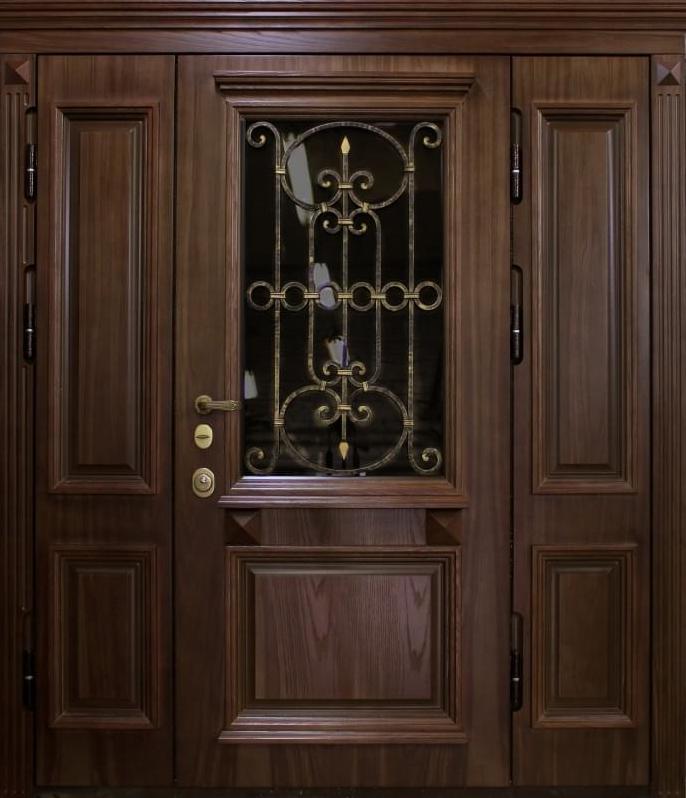 Дверь входная двухстворчатая с витражным стеклом №47