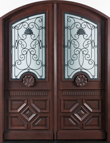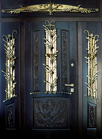 Дверь с надежной фурнитурой и коваными элементами на стекле №18