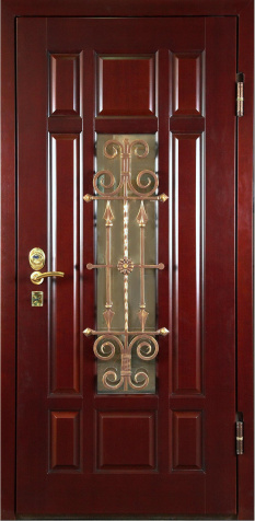 Витраж всегда придаёт фасаду особый шарм, а в сочетании с массивом дерева он превращается в акцент, подчеркивающий престиж и вкус хозяев. Дверь входная двухстворчатая с витражным стеклом №47 создана для просторных коттеджей и частных домов, где важна не только безопасность, но и впечатление от первого взгляда. Прочный металлический каркас с листом стали 2 мм и усиленными ребрами жёсткости гарантирует надежность конструкции, а два контура уплотнения защищают от продувания. Витражные вставки делают дверь более выразительной и наполняют прихожую естественным светом, создавая эффект уюта. Массив дерева в отделке стойко переносит эксплуатацию, сохраняет презентабельный вид долгие годы и вносит тепло в архитектуру здания. Возможность выполнения в любых размерах и разнообразие вариантов оформления позволяют легко вписать модель в классический или современный экстерьер, добавив в него индивидуальности. Дверь входная двухстворчатая с витражным стеклом №47 от производителя: быстрое изготовление и монтаж в Озерах, индивидуальные размеры, широкий выбор материалов и фурнитуры, официальная гарантия до 10 лет.