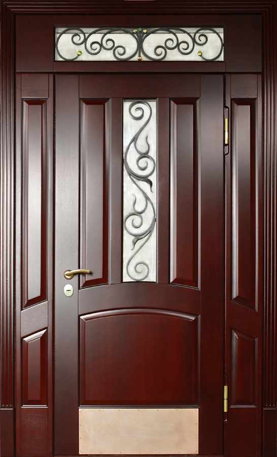 Красивая шпонированная дверь с надежной фурнитурой и ковкой "лоза" №33 идеально дополнит интерьер вашего частного дома или коттеджа. Внешняя и внутренняя отделка выполнены из натурального дерева, что придает двери элегантность и стиль. Профильная труба 50х25 мм используется для каркаса и полотна, а лист металла толщиной 2 мм и ребра жесткости из профильных труб 40х25 мм обеспечивают прочность и долговечность. Несмотря на отсутствие терморазрыва, дверь гарантирует надежную защиту и теплоизоляцию благодаря двум контурам уплотнения. Элементы ковки "лоза" придают двери особое очарование, сочетая практичность с эстетикой. Эта дверь — идеальный выбор для тех, кто ценит стиль, качество и безопасность. Красивая шпонированная дверь с надежной фурнитурой и ковкой "лоза" №33 от производителя: быстрое изготовление и монтаж в Озерах, индивидуальные размеры, широкий выбор материалов и фурнитуры, официальная гарантия до 10 лет.