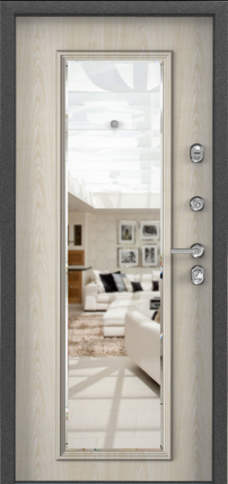 Сочетание прочной конструкции и декоративных решений делает эту модель особенно практичной для частного дома или квартиры. Каркас и полотно выполнены из профильной трубы с листом стали толщиной 2 мм, усиленные рёбрами жёсткости и блокираторами, что обеспечивает высокую надёжность. Два контура резинового уплотнителя препятствуют проникновению влаги и сквозняков, а порошковое напыление на внешней поверхности защищает металл от коррозии и сохраняет аккуратный вид даже при воздействии осадков и солнечного света. Внутренняя отделка панелями МДФ ПВХ создаёт уютный интерьерный акцент и устойчива к повседневным нагрузкам. Дверь входная металлическая уличная в дом №12 дополнена зеркалом, которое делает её не только функциональной, но и более удобной в быту. Для безопасности предусмотрены два замка российского производства — сувальдный Просам и цилиндровый Мосрентген, каждый с тремя ригелями. Дополнительно дверь можно оснастить стеклопакетом или коваными элементами, превратив её в индивидуальное решение для конкретных задач. Дверь входная металлическая уличная в дом №12 от производителя: быстрое изготовление и монтаж в Озерах, индивидуальные размеры, широкий выбор материалов и фурнитуры, официальная гарантия до 10 лет.